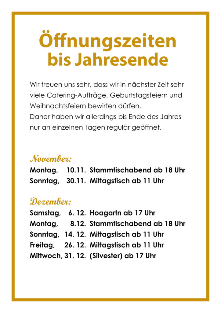 Wir versuchen alle eure Anfragen schnellstmöglich zu beantworten. Da wir unser Wirtshaus aber nicht hauptberuflich betreiben bitten wir um euer Verständnis, dass wir möglicherweise ein, zwei Tage brauchen, bis wir uns bei euch zurückmelden können.