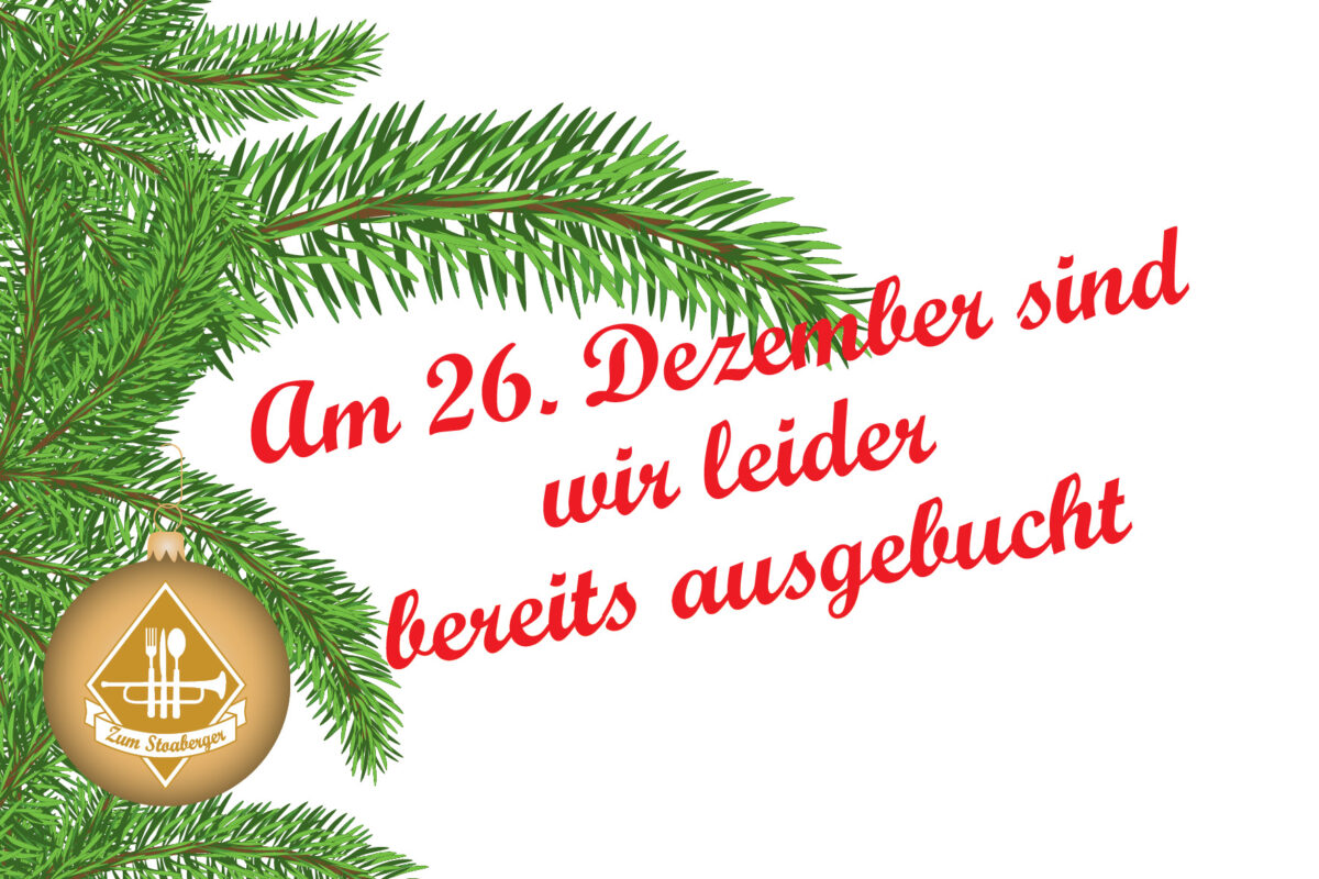 Am 26. Dezember dürfen wir euch ab 11 Uhr zum Mittagstisch begrüßen.